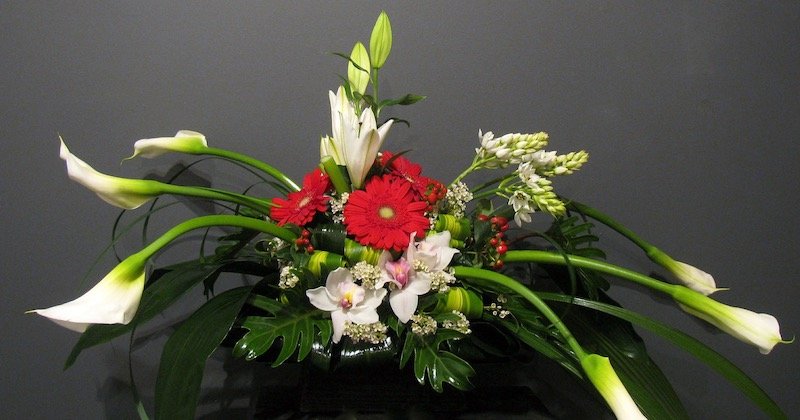 Tags: arrangement, blanc, contemporain, coussin, funéraire, gerbera, orchidée, rouge