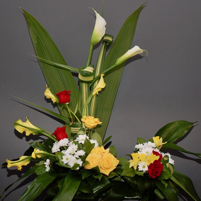 arrangement urne, calla, funéraire, stylisé